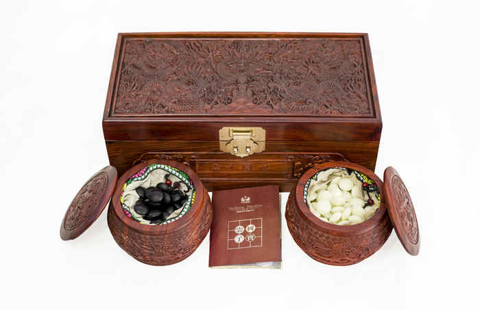 采用国家级保密配方及熔炼工艺而成,质地细腻如玉,在棋盘上用力拍击不碎,具有冬暖夏凉的玉质特征