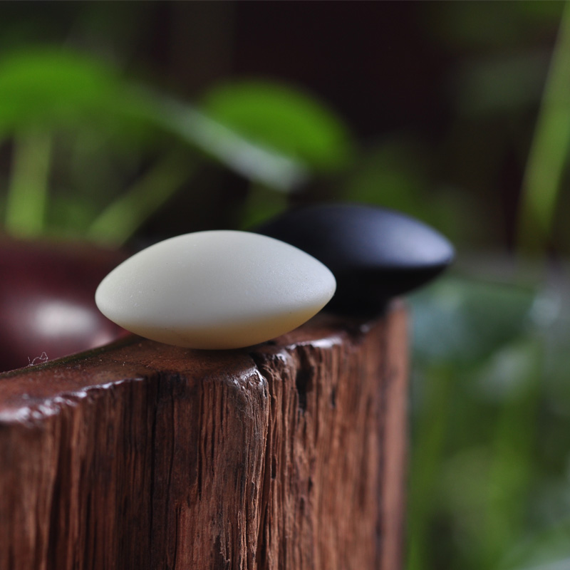 正面微凸,底面扁平,便于手持拈子和教学置棋