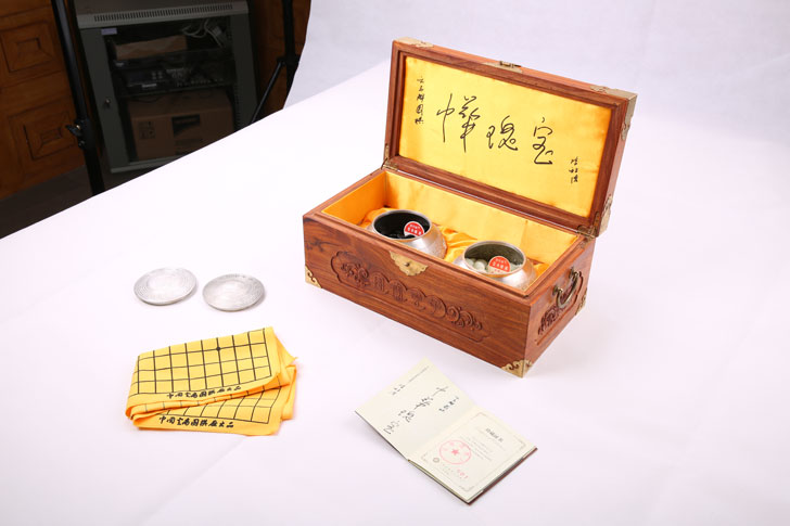 全手工打磨古云子配方双面凸棋子,棋子直径为22.7-23.2mm,厚度12mm左右,白子呈象牙色,晶莹似玉。黑子乌黑透碧,犹如天然玉石磨制而成。对强光照视,黑子绿碧透亮,宛然清潭秋水,给人以悦目清新之感。