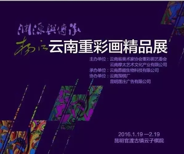 由云南省美术家协会重彩画艺委会、云南摩太艺术文化产业有限公司联合主办,云南昴能生物科技有限公司承办,云南围棋厂、昆明莲庄广告有限公司协办的杨江云南重彩画精品展于2016年1月19日-2月19日在官渡古镇云子棋院开展。
